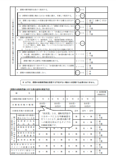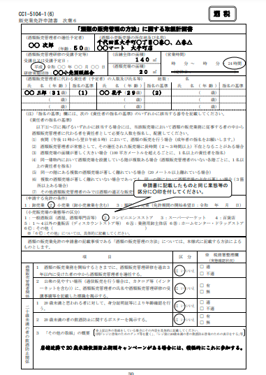 | 販売業免許申請書次葉6 「酒類の販売管理の方法」に関する取組計画書 様式:CC1-5104-1(6) | 「酒類の販売管理の方法」に関する取組計画書を記載します | ![]() ![]() |