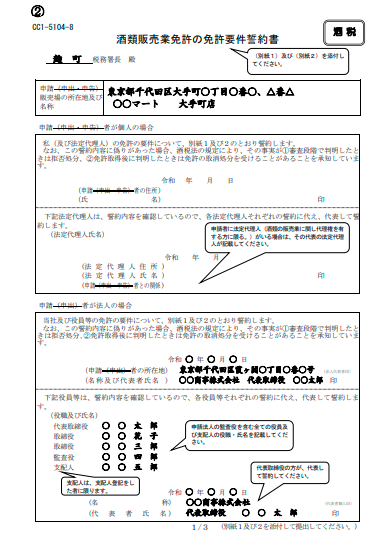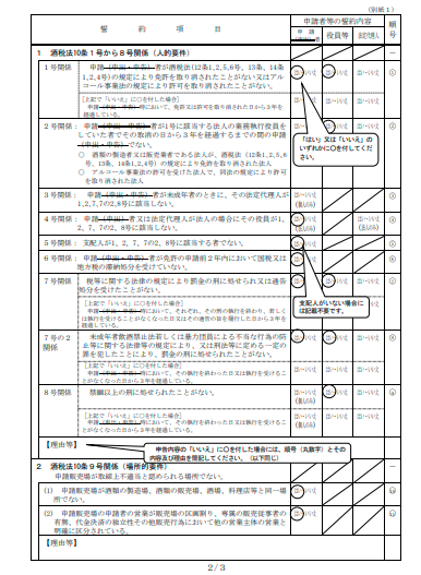 | 酒類販売業免許の免許要件誓約書 | ![]() ![]() ![]() |